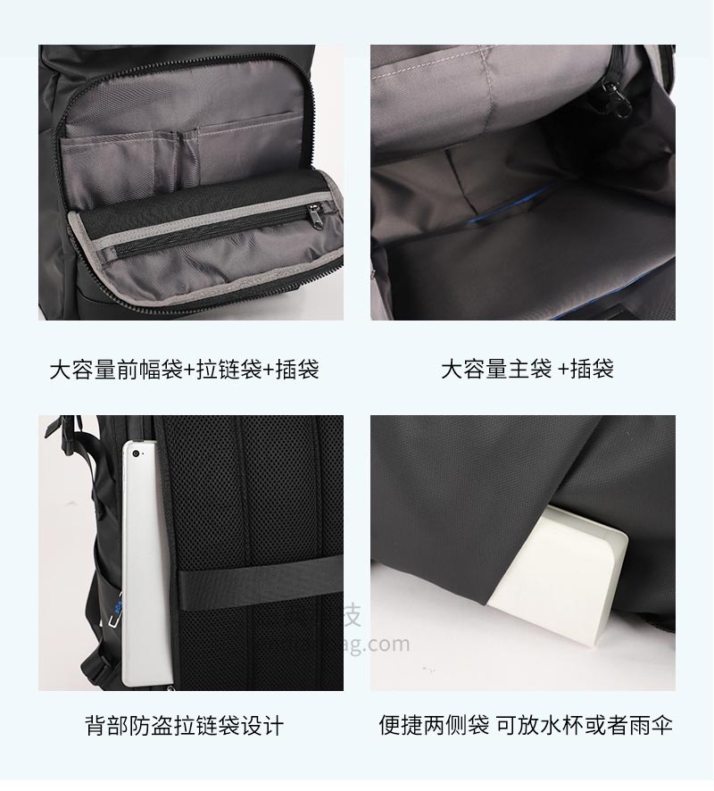 S型肩带,肩带加宽设计,肩部均匀受力,大容量主袋+电脑独立隔层;