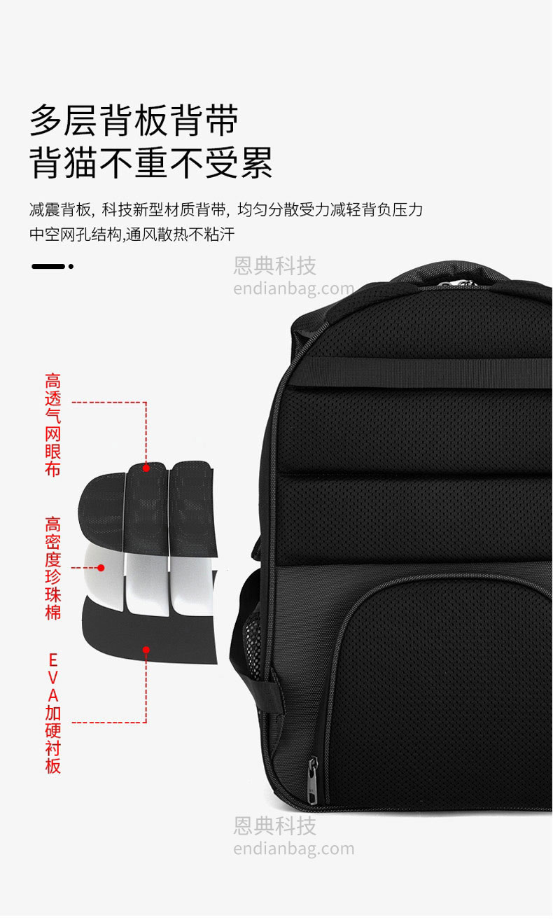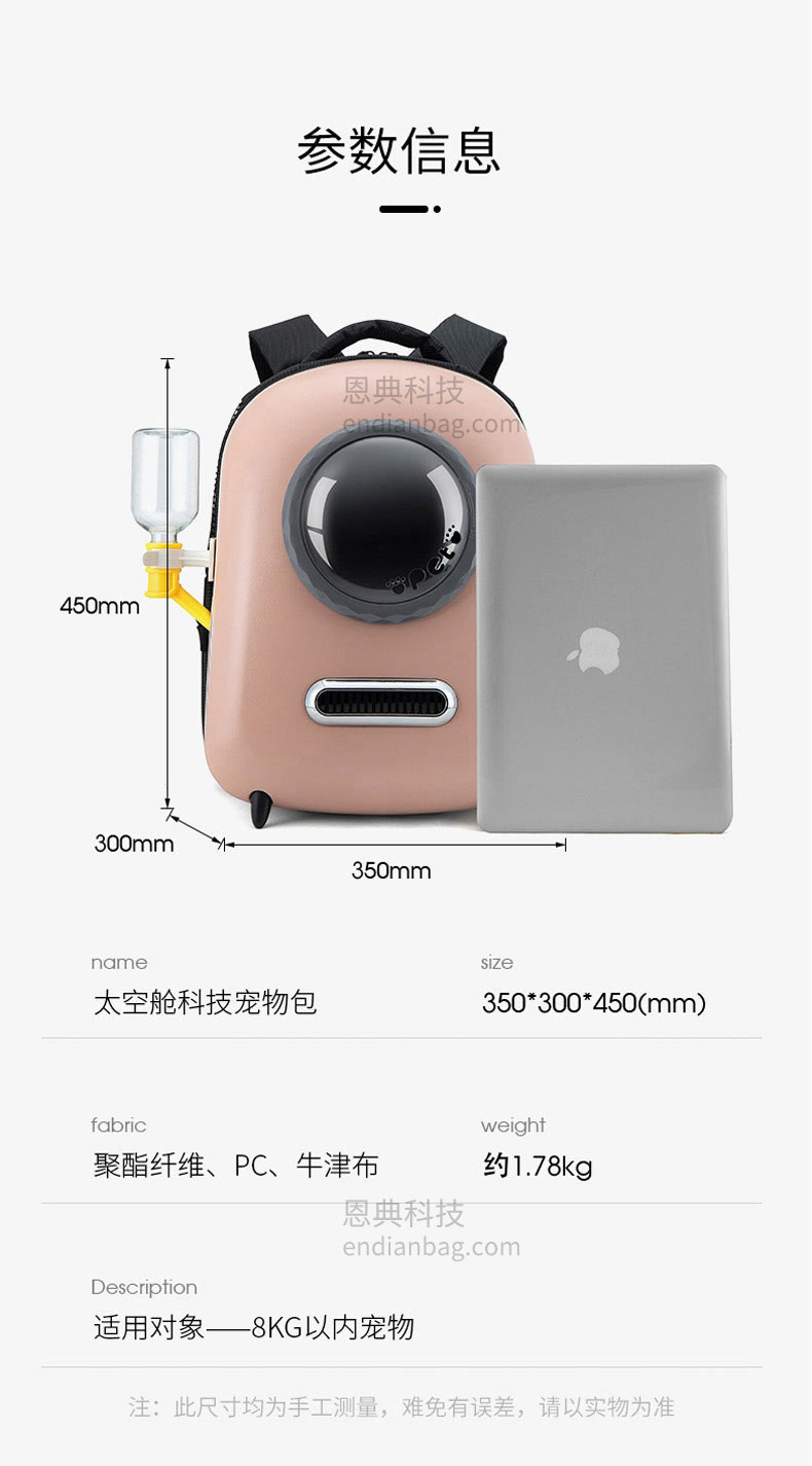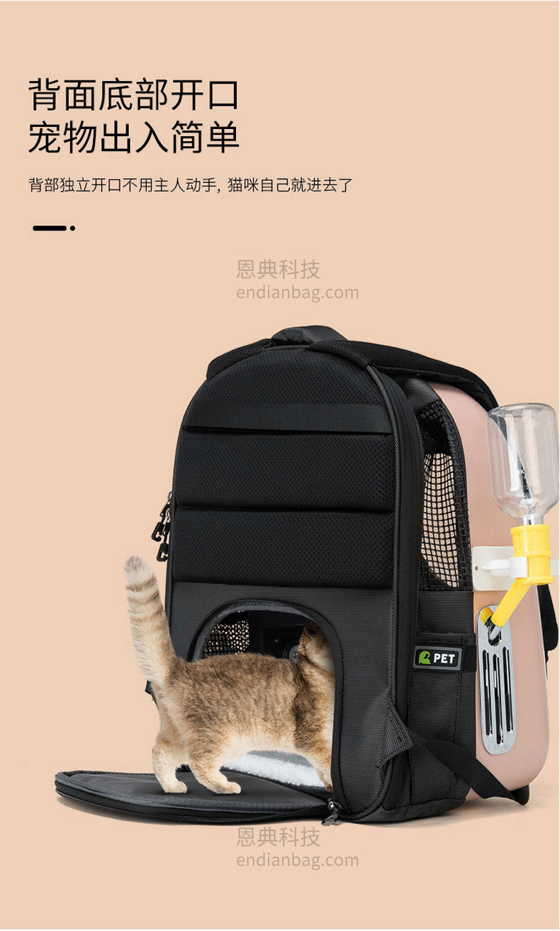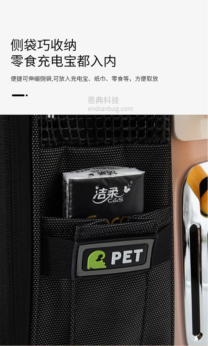 智能太空宠物包定制三面进气格栅设计,环绕式通风。包内设有温度/湿度感应器,时刻了解包内环境。包包设有LED氛围炫光灯,随意变换各种色彩。包包内里立体大空间,宠物可随意变换姿势。减震背板,科技新型材质背带,均匀分散受力减轻背负压力,中空网孔结构。宠物包定制请认准东升国际科技背包厂家。东升国际科技是一家拥有25年背包定制经验的箱包厂家,自建15000㎡工业园、16条智能生产线、32人设计研发团队,合作伙伴有新秀丽、阿里巴巴等企业。所以,东升国际科技是您值得信赖、值得选择的背包厂家。