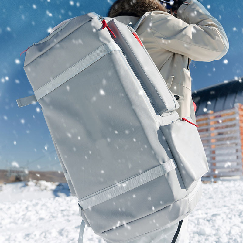 大容量滑雪包定制升级TPU材料三级防水技术;55L干湿分区,科学收纳;S型肩带设计受力分布均匀,储物袋压胶防水拉链,防止雨雪侵入;EVA硬壳式背板,导汗LOGO,促进空气流通。滑雪包定制请认准广东东升国际科技,25年箱包行业生产定制经验,自建1.5万平米工业园,8000平米工作区,462名艺师,16条生产线,日产量可达13000Pcs。自有实验室拥有恒温恒湿、拉力、盐雾、破裂、拉链往复等检测设备,从原材料到成品每一个环节都经严格的检测,东升国际皮具所使用的材料均达到国际环保REACH标准,客户中标率和返单率高达70%,5年畅销达到500万个。从开发到生产,专人为您把关每一个环节做好跟进服务。定制热线:18575391373
