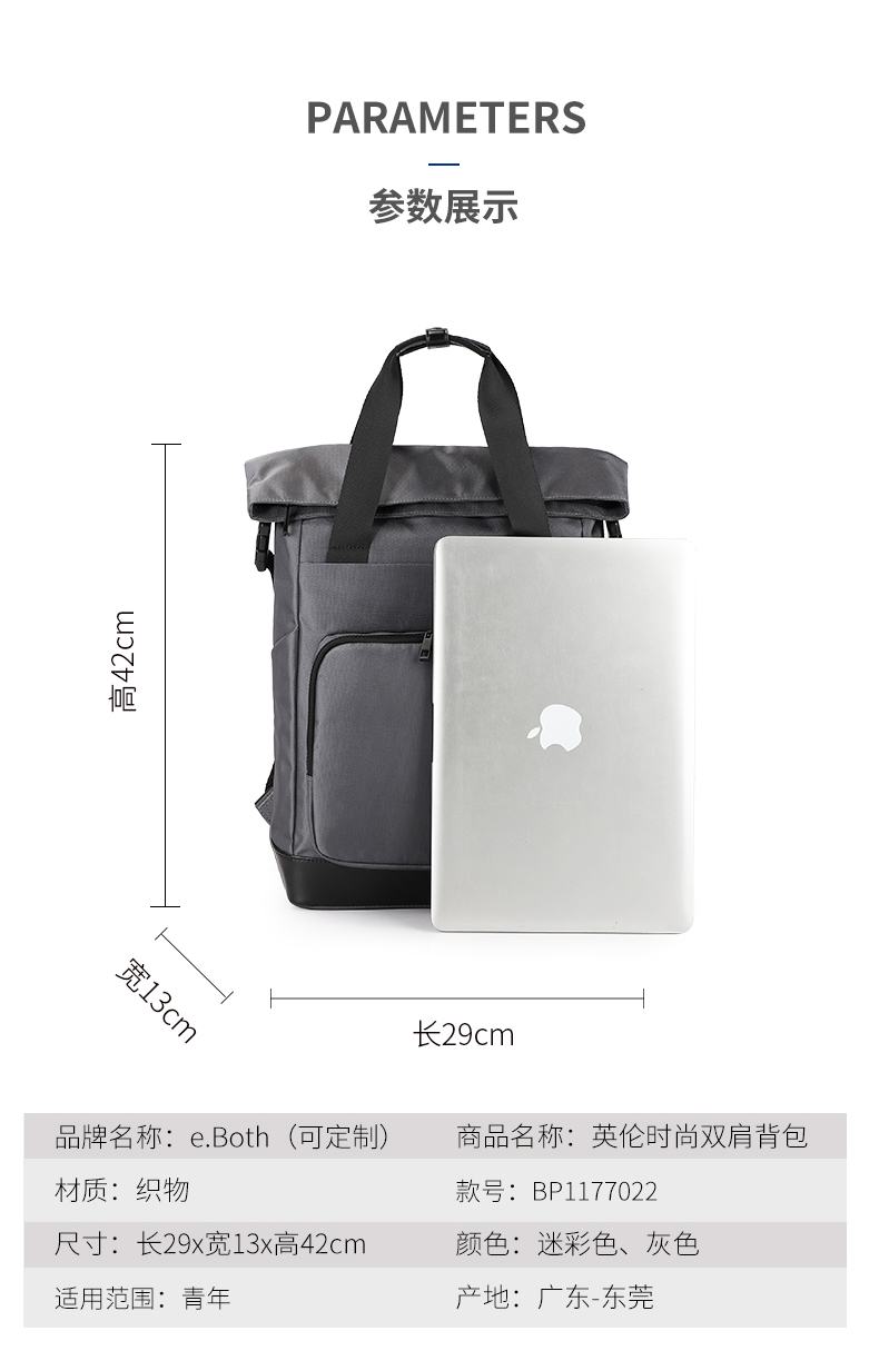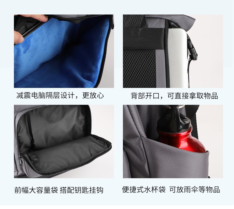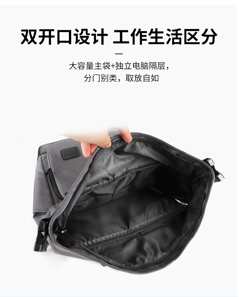 大容量主袋+独立电脑隔层,分门别类,取放自如;